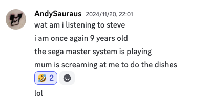 Also UFO 50 has been my go to comfort game when I find solving murders too taxing. Mesmaa from our Discord community has joined me in picking apart this relic to a lost console that doesn’t exist, but I think Andysaurus summed up my sentiment around the game after I shared this absolute banger from the Seaside Drive OST.